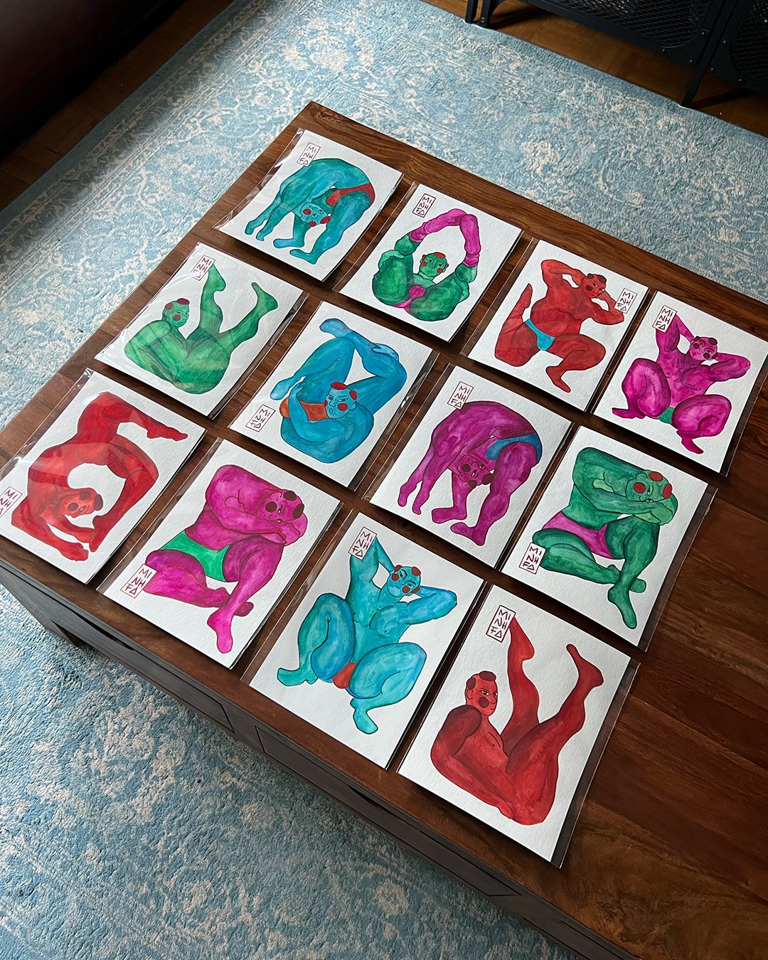 This is a collection of lonely boys switchin’ them positions (for you) in very colorful hand drawings.